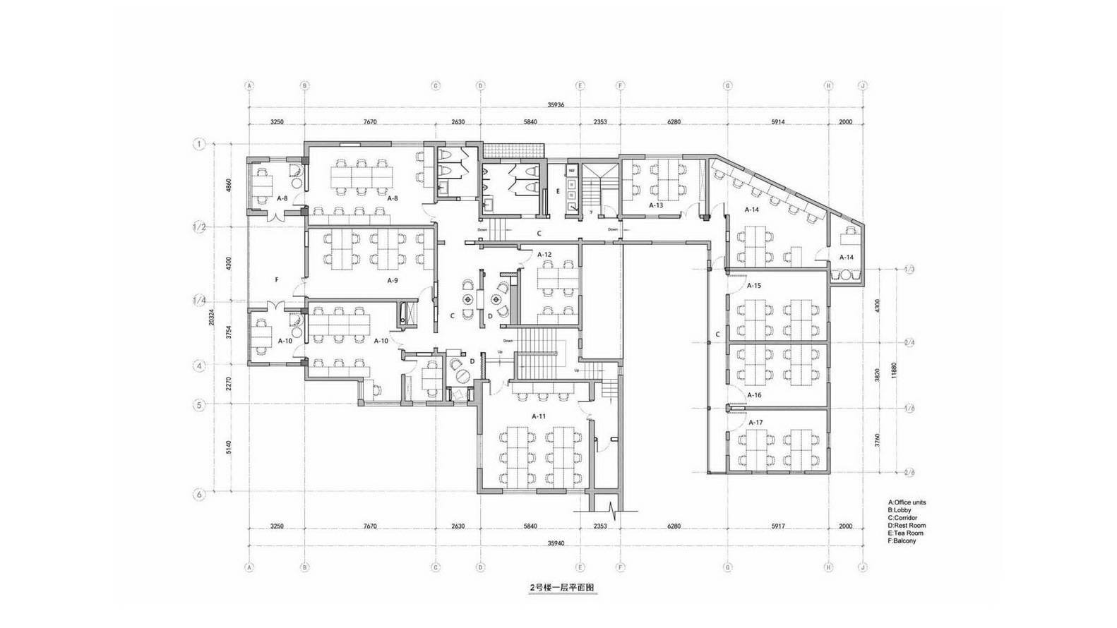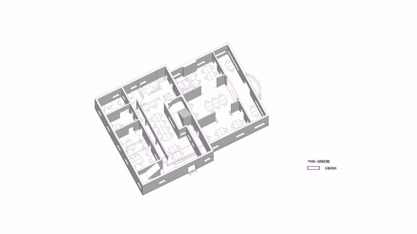 雖然兩棟建筑的外立面風貌保存較好,但內部幾經易主,風格元素雜糅,空間無序列感。改造前,它是上海計算技術研究所,整體空間按照國有企業(yè)的管理體制所需被切割成了一個個小的科室,與當下共享辦公空間的理念所代表的辦公方式相去甚遠。因此,從功能的角度來說,我們需要在新與舊之間的“破“與“立”中完成這場時空對話,實現美學與功能的精準平衡。