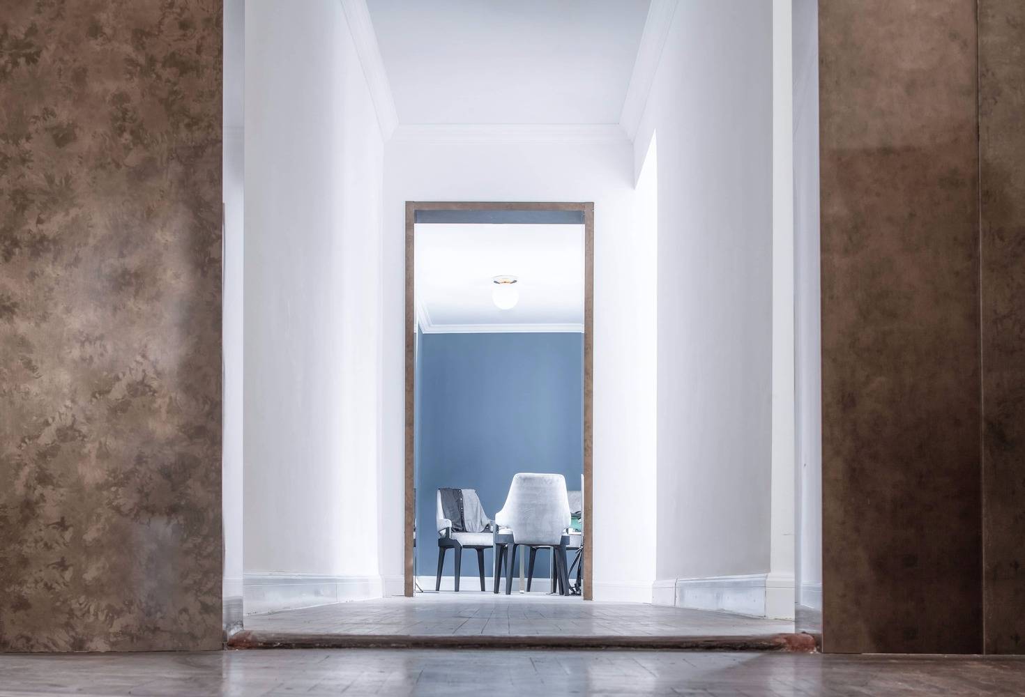 柯布西耶式燈具的現代對應馬賽克的古典;石庫門的厚重沉穩(wěn)對應銅金屬的靈活多變;羅馬圓拱式的經典弧線對應“一”字線條的燈光,每一處看似沖突的對立卻是一種和諧的共生,似乎有意讓人思索:盡管百年間建筑和人類生活方式發(fā)生了顛覆性的變化,但這一切促成的是更加模糊的邊界,更加多元的風格以及更自覺的自我和空間意識。