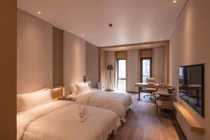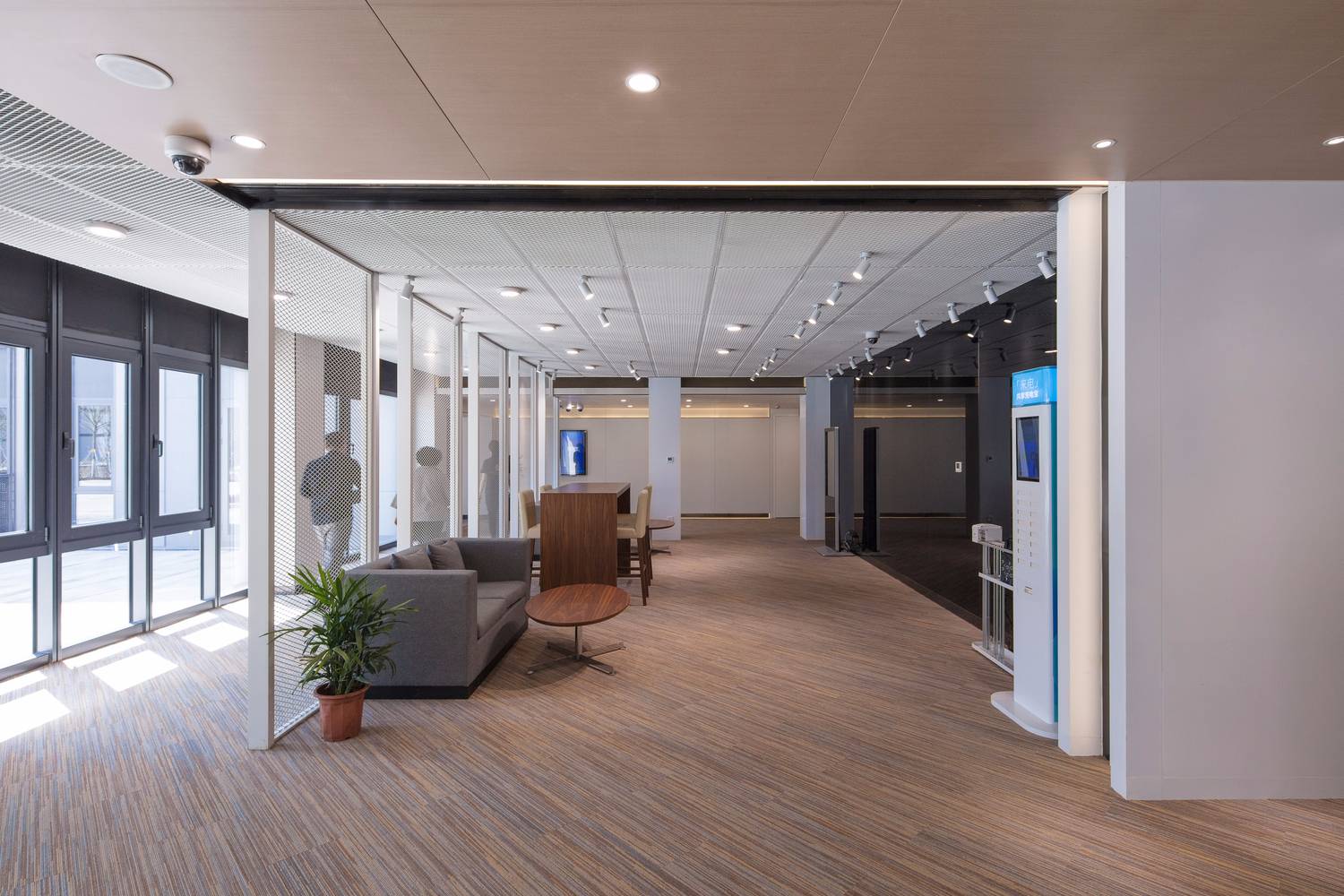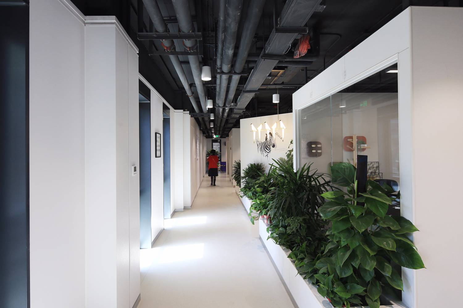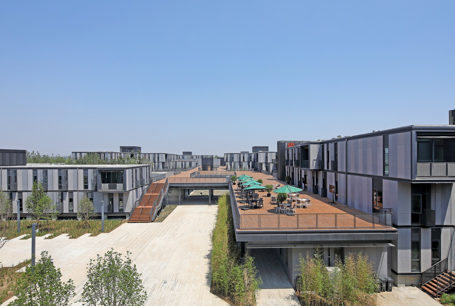 在這里有完善的共享服務(wù)體系。作為雄安新區(qū)第一個啟動項目,周邊基本全是農(nóng)田,配套設(shè)施明顯不足。我們在場地的中部設(shè)置了以公共的服務(wù)平臺,在這里你可以有不同的選擇,職工餐廳、特色餐飲、咖啡店、健身房、無人超市、文具店,應(yīng)有盡有,共享共用。