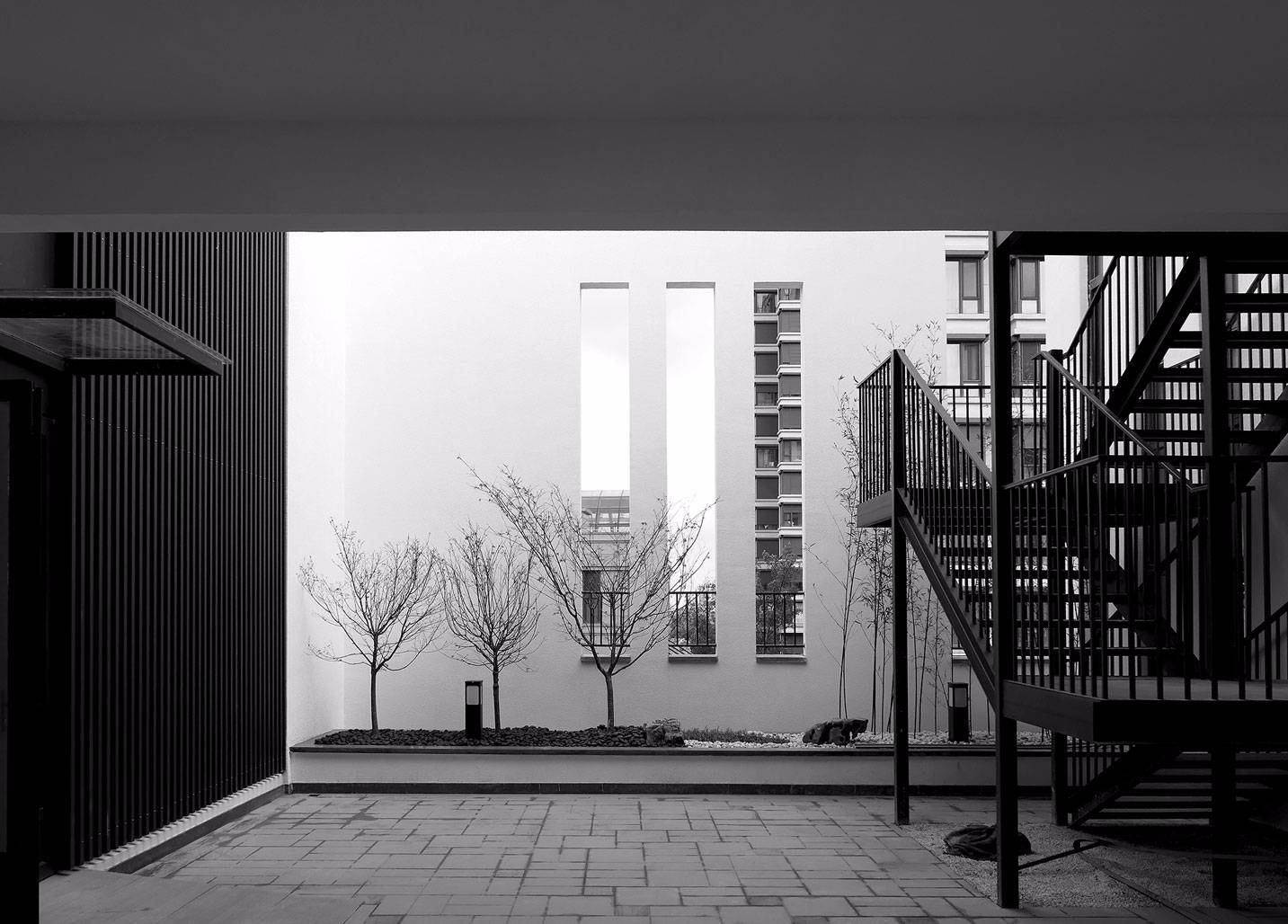 江南傳統(tǒng)村落中家家戶戶有院落,村內(nèi)有大樹、井邊村民聚集的場所,有水邊公共洗衣的臺階,有宗族的祠堂等等。這種從私密到半公共再到公共的一系列空間序列,完全反映了人們的勞動生活和飲食起居,樹下井邊的場所也成為社會組織和人際交往的空間紐帶。千年古鎮(zhèn)南翔自古以來經(jīng)濟富庶、文人輩出,但近年來新建的城區(qū)漸漸喪失了江南的古韻。我們希望以東社區(qū)鄰里中心的建設為契機,對江南的院落文化做出現(xiàn)代的解讀。