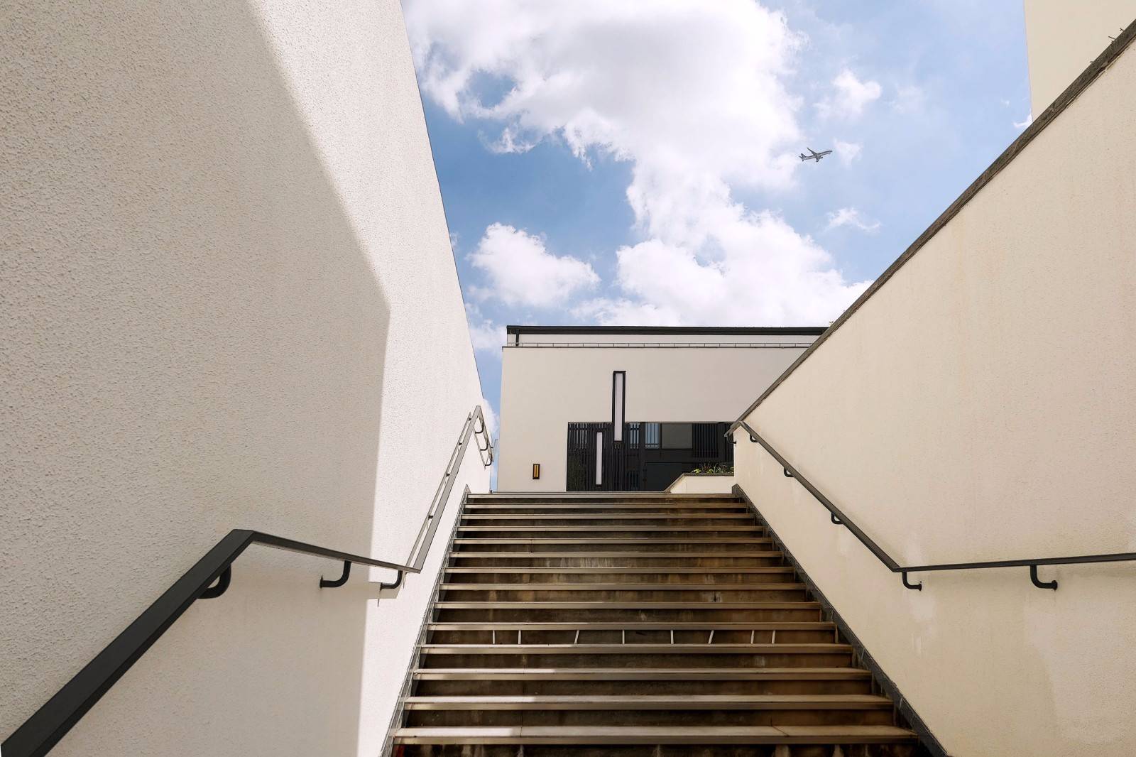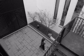 我們將一系列具有江南民居尺度的院落提升到空中,通過一個大臺階把空中廣場一直延伸到地面。這些空中的小院落在空中又圍合成一個大院落,中間是一個廣場??罩袕V場有著傳統(tǒng)村落中樹下井邊的空間尺度,是人們聚集和交流的空間。由大臺階拾級而上,中間還設置了幾個布滿綠化的休息平臺。