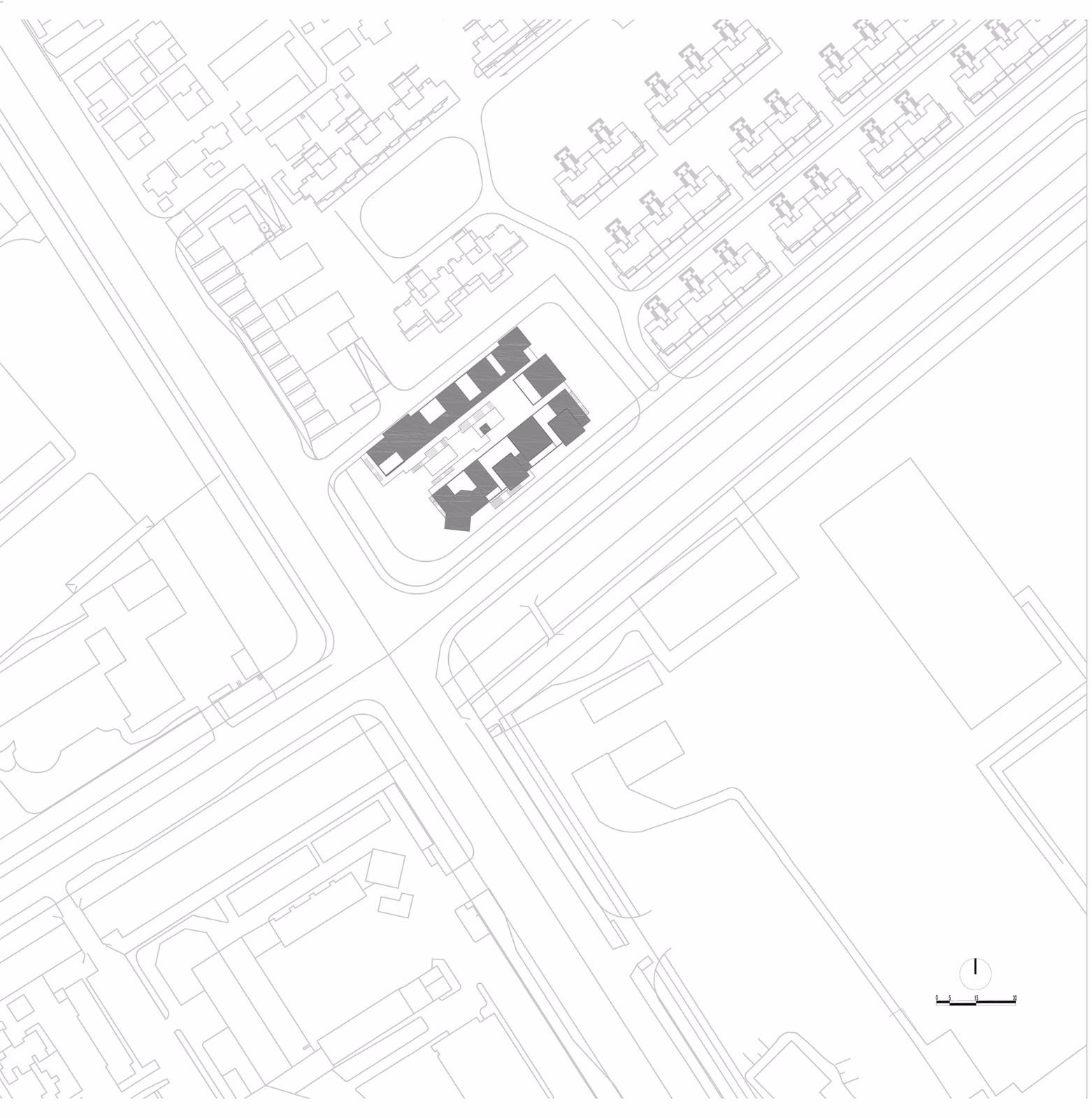 由于人口高度集聚,上海的主要居住形式不可避免地由聯(lián)排石庫門到弄堂雜居,再轉變?yōu)楫斀癜倜赘邔幼≌瑯侵械哪吧劬印6倜赘邔铀鶈适У?,正是里弄中充滿人情味和煙火氣的、具有人性化尺度的公共生活空間,以及見天見地的私家院落和天井。鄰里關系影響下的社會也從里弄時代的“熟人社會”,轉變成高樓時代的“生人社會”。南翔鄰里中心處在一個百米高層包圍的地塊中,試圖通過重現(xiàn)宜人的公共空間尺度和空間肌理,恢復往日親切的鄰里交往。