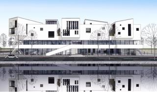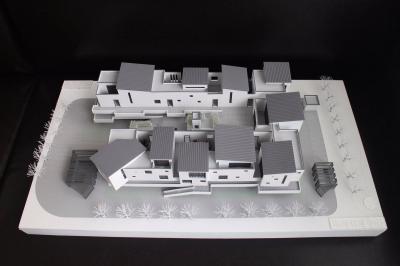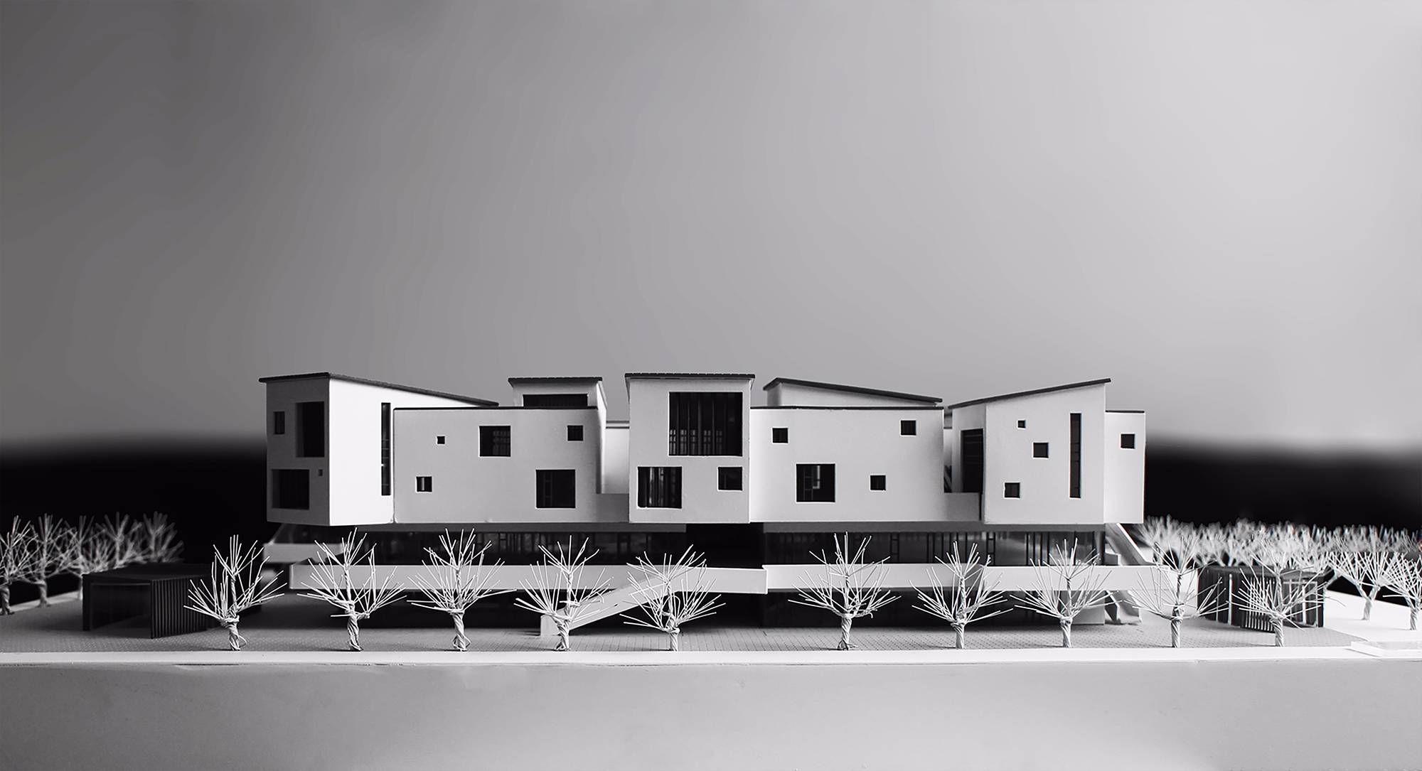 在高密度的城市中,我們無法以原有村落的方式舒朗地布局,規(guī)劃條件給出的是建一個四層以上的建筑。如何在一個四層的建筑中,還原傳統(tǒng)江南民居院落的肌理和村莊的布局呢?我們的第一個想法是,這個項目不應該是一棟孤立的大建筑,而是像傳統(tǒng)村落一樣由許多帶院落的小建筑組成,這樣才能形成“鄰里”的氛圍 。