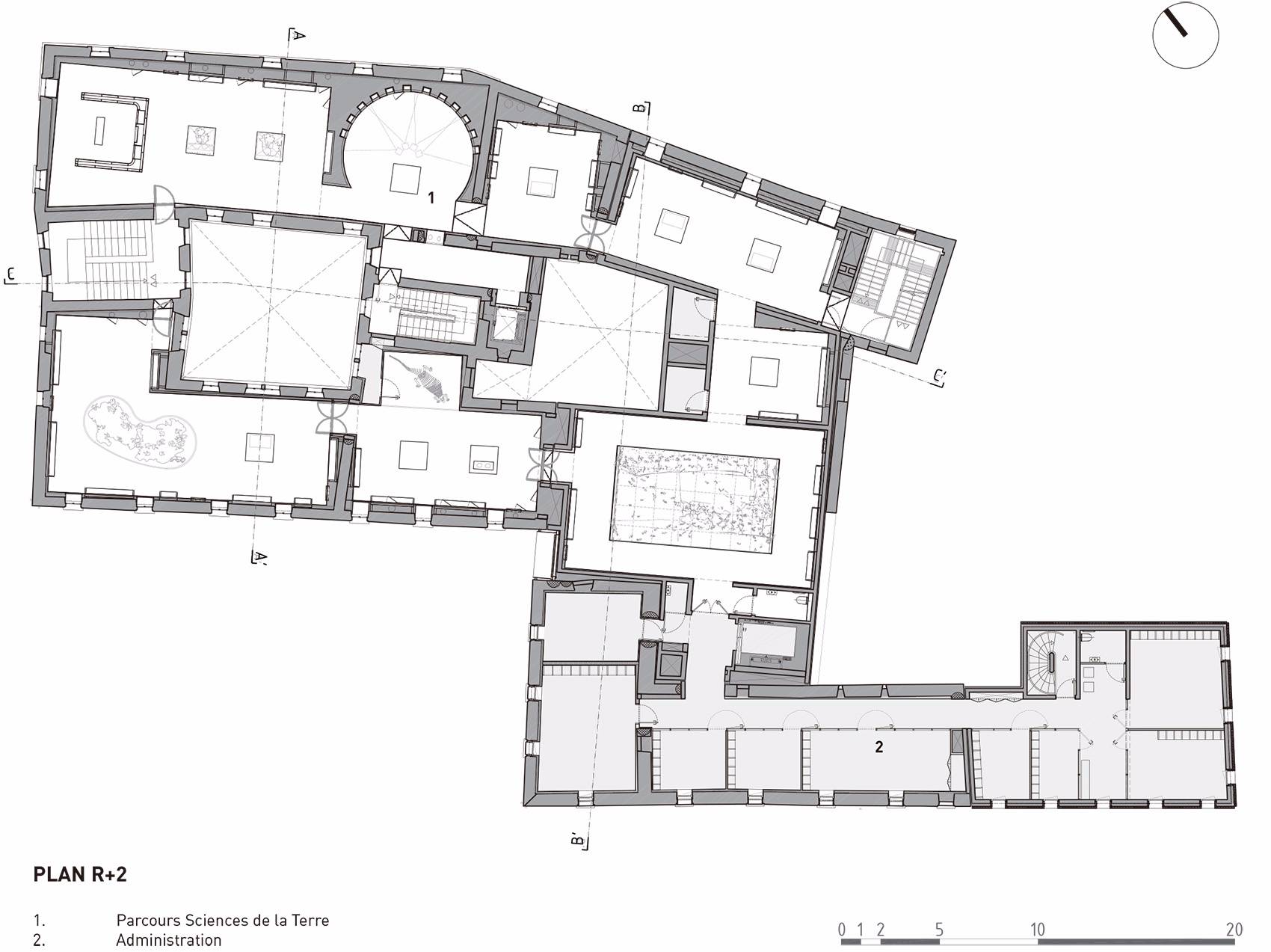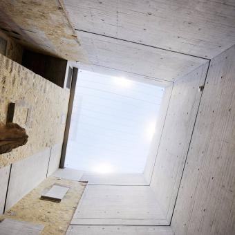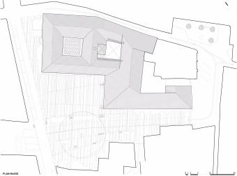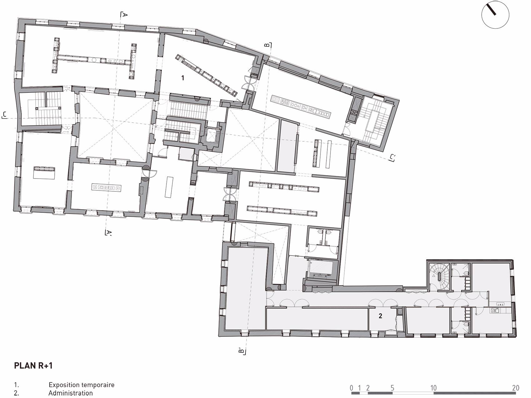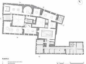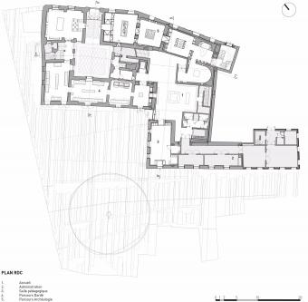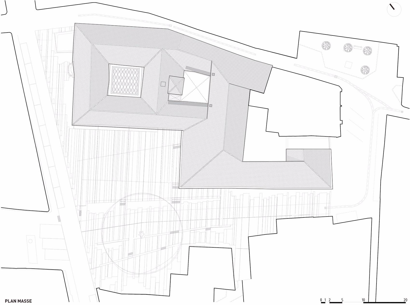 該項(xiàng)目所在的場(chǎng)地十分復(fù)雜,很難從一系列既有建筑中找到突破口。Fleury酒店大概算是其中最出挑的一座建筑。設(shè)計(jì)團(tuán)隊(duì)選擇在這里置入一個(gè)現(xiàn)代的立面,作為博物館的新入口。建筑的內(nèi)部和外部均呈現(xiàn)出天然的“礦物”質(zhì)感,從象征性和結(jié)構(gòu)兩個(gè)方面將建筑的不同時(shí)期聯(lián)系在一起。