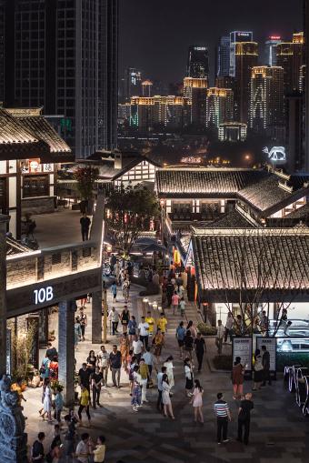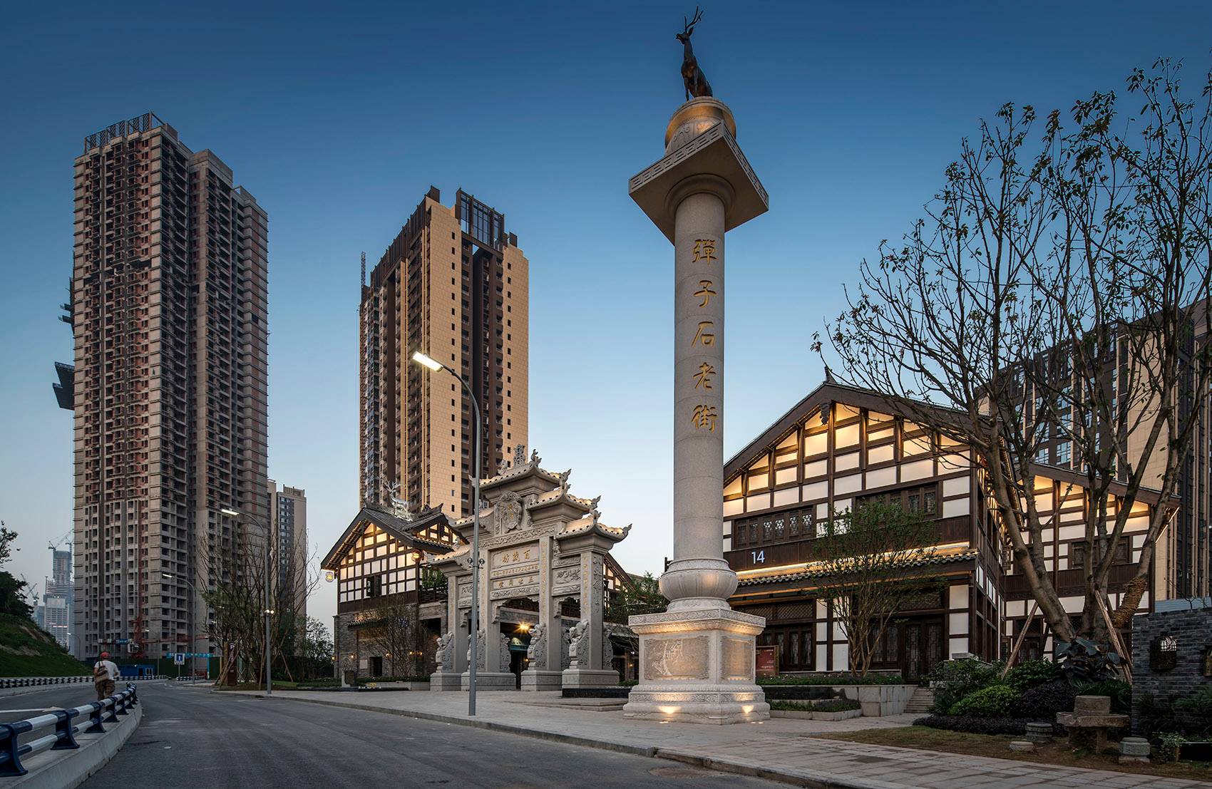 項目位于重慶市南岸區(qū),眺望重慶大劇院及朝天門,面臨長江及嘉陵江交匯處。此零售商業(yè)區(qū)占地約21,500平方米,包括一條一公里長的商業(yè)街,以「一街兩端口四院十景」為發(fā)展概念,沿濱江展開。以昔日重慶的繁華為主軸,項目保留了大量懷舊景點,其他歷史建筑則經(jīng)重修活化作其他用途,當(dāng)中包括法國水師兵營舊址,地段的歷史與全新發(fā)展和諧共存。為配合和襯托出項目的傳統(tǒng)元素,彈子石老街的新建建筑均采用現(xiàn)代中式建筑風(fēng)格。所設(shè)置的框景門窗以及圖案隔柵和屏風(fēng)作為景觀導(dǎo)向,能夠引導(dǎo)視線,以最佳方式觀賞如畫的風(fēng)光。傳統(tǒng)的青磚瓦片糅合現(xiàn)代材料,感覺煥然一新,古典的圖案也被重新包裝成現(xiàn)代幾何圖案,創(chuàng)新演繹典雅美感。