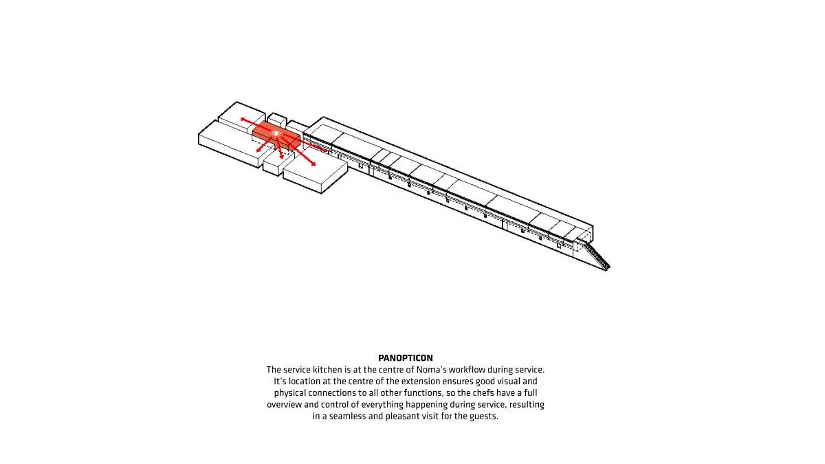 餐廳位于克里斯蒂尼亞社區(qū)內(nèi),“新Noma餐廳將傳統(tǒng)餐廳設(shè)計(jì)理念進(jìn)行拆解,將廚房置于整體空間的核心位置,然后再根據(jù)廚房的位置將其他部分重新組合,”比亞克·英格爾解釋道。