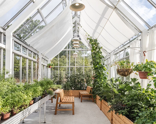 Noma的新餐廳由一系列建筑體量組成。室內(nèi)設(shè)計(jì)了一個(gè)巨大的天窗和一組寬敞的側(cè)窗,更好地將戶外花園呈現(xiàn)于顧客眼前。在其它地方,靠近地塊的另一端,有三個(gè)獨(dú)立的玻璃房子分別作為餐館的花園、試驗(yàn)廚房和面包房??腿藗兛梢月接谶@些建筑之間,感受具有北歐特色的建筑材料和建造技術(shù)。