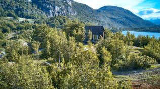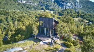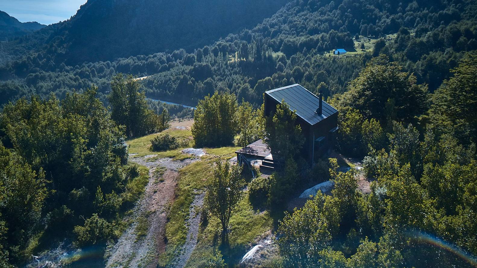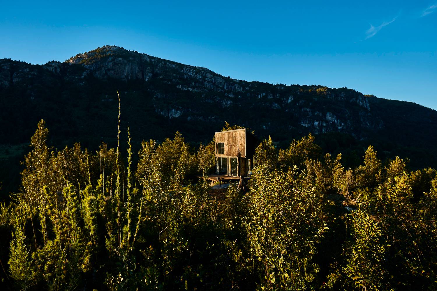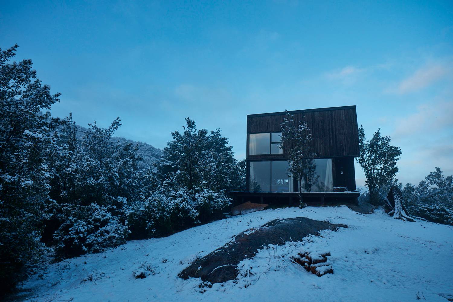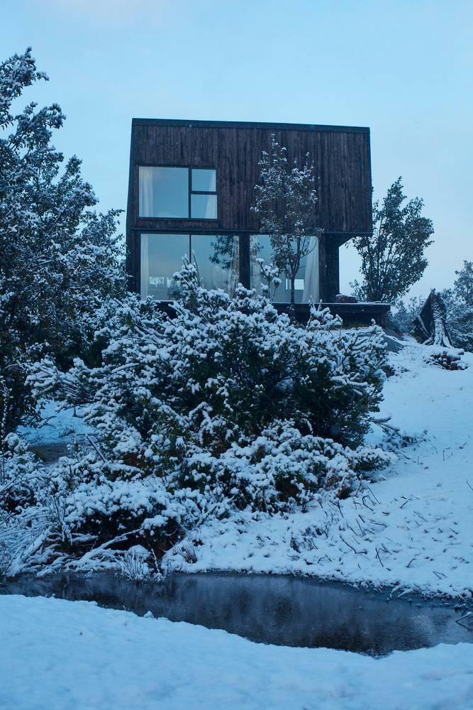 GZ2是一座位于 Lonconao 湖中半島一個小懸崖上的小屋,面積為36平米。此地距離 Los Lagos Región 的 Futaleufú 約15公里。房子的設(shè)計很簡潔,通過一個裝有落地玻璃窗并延伸到外部環(huán)境中的自由平面開放式露臺,將建筑周邊的自然湖景風(fēng)光盡收眼底。