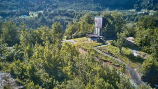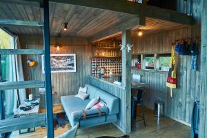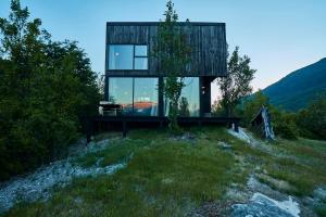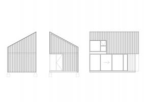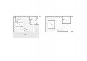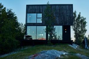 二層閣樓空間較為私密,面湖的窗子也相對低調(diào)一些,由于位置偏高,閣樓能夠保持從底層上升的熱量。小屋就建在原有石基頂上,宛若林中的小塔,盡可能地減少對森林地表的干擾。