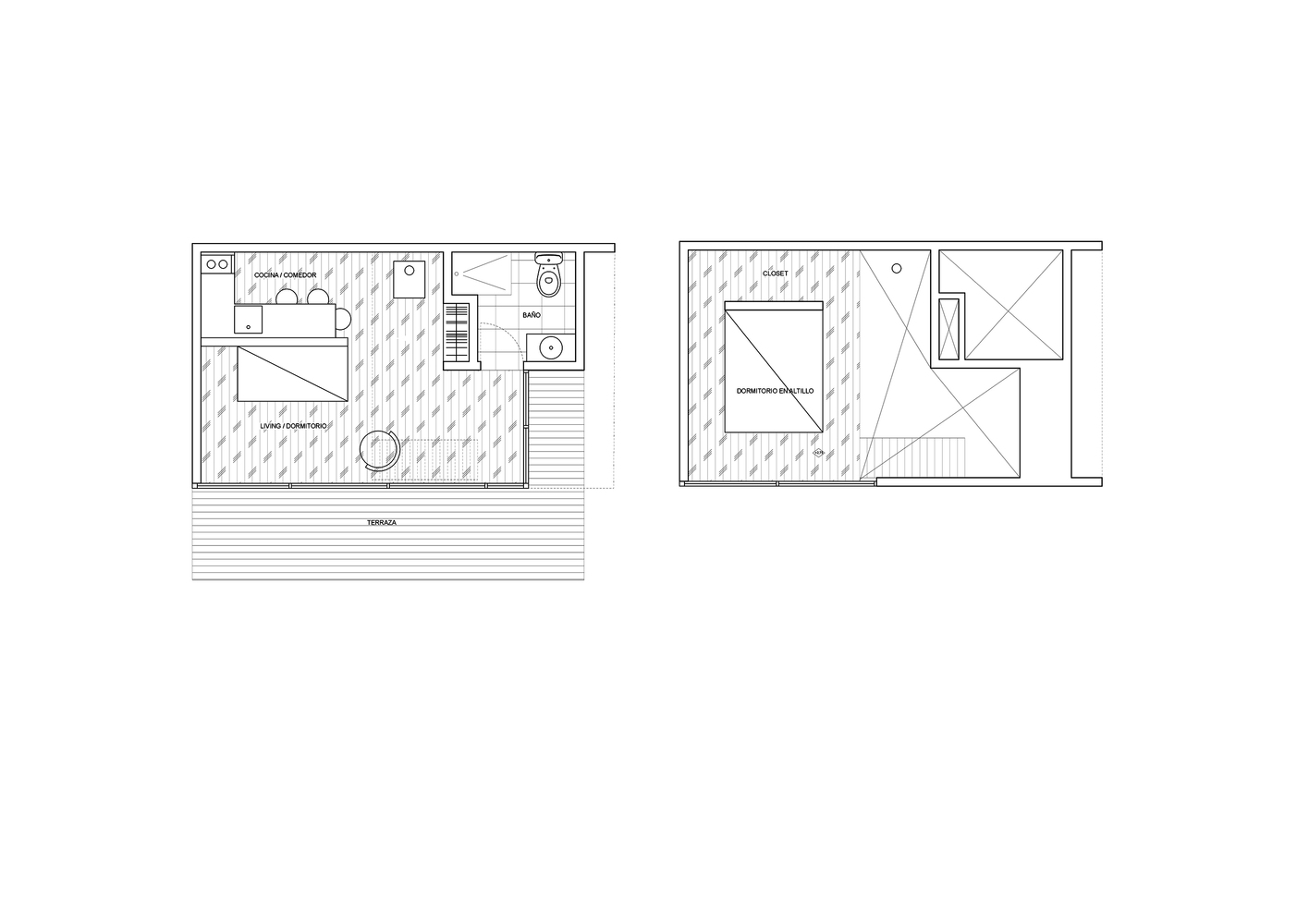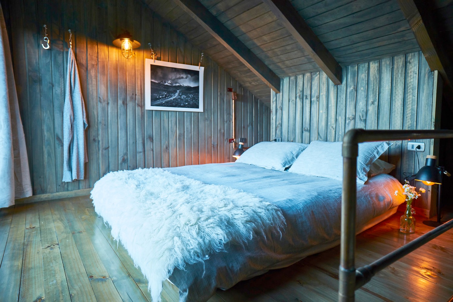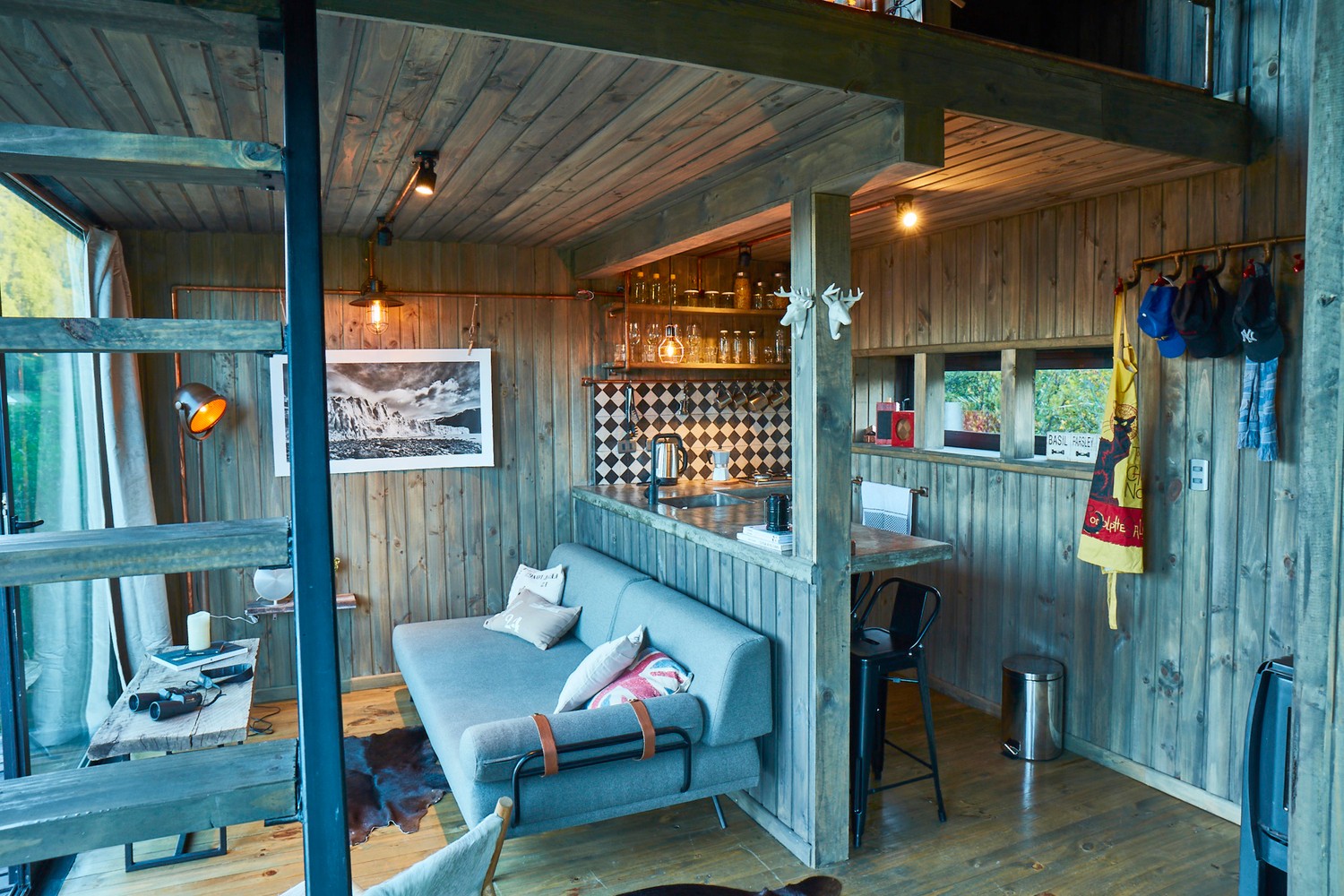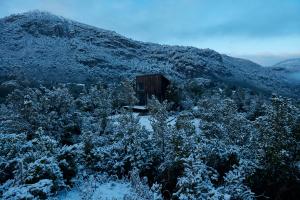 屋內(nèi)陳設(shè)樸素,在起居室內(nèi)有供給旅行者用于儲藏的壁櫥,還有由拼合板材和釉面水泥臺搭成的操作臺,使用者可以在這里烹飪、洗衣或是就餐。廚房和浴室分別有一扇凸窗,用于增加儲物空間,并能夠通過對流風(fēng)來調(diào)節(jié)巴塔哥尼亞地區(qū)的夏季溫度。
