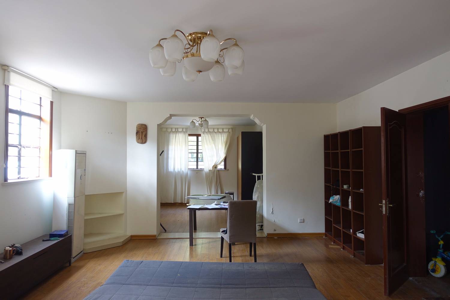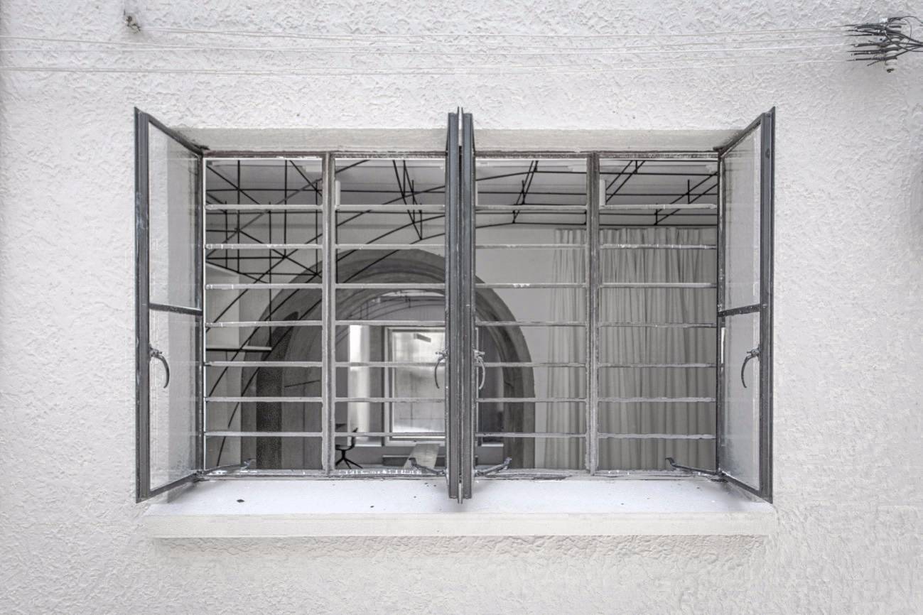 MONOARCHI的辦公室位于小區(qū)內部一棟三層別墅的首層中,建筑面積約100平方米。整幢建筑最早為一個家庭所有,但因特定歷史原因產(chǎn)權被分割,目前一層居民與二、三層的居民共享一個30平米的獨立院子。出于對這座老宅的喜愛和尊敬,我們在最初接觸這棟房子的時候就決定了對原有的建筑室外和室內的結構格局不做任何的破壞與改變,盡可能的保留住歷史的這份厚重感。