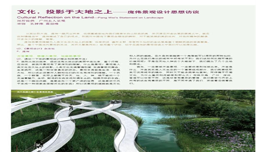 龐偉將景觀理解為人類文化在大地上的投影,他舉例說,遍布鄉(xiāng)野,尋常而又燦爛的金達萊是整個朝鮮民族的審美聚焦。那么,整個中國當(dāng)代景觀的關(guān)注、關(guān)懷又聚焦何處?縱觀整個訪談,似乎在龐偉的景觀話語之中我們可以覓得出路。