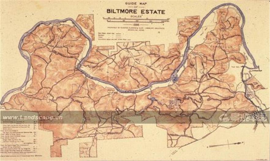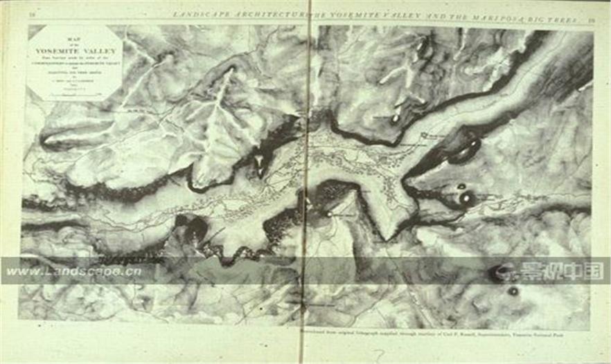 在美國,人們認為弗雷德里克•勞•奧姆斯特德(Frederick Law Olmsted)被視為景觀設(shè)計學的創(chuàng)始人,因為他首先使用了 “Landscape Architecture(景觀設(shè)計)”來描述自己的職業(yè)。他對歐洲的認知對他個人影響非常大,或許他最著名的作品是與卡爾沃特•沃克斯(Calvert Vaux)合作完成的紐約中央公園設(shè)計(圖12)。但我個人認為他另外兩個項目具有重要意義。19世紀60年代,約翰•繆赫(John Muir)和奧姆斯特德以及其他人認為需要保護一些美國的重要景觀(這個想法同1000年前黃山保護的想法非常類似)。他們作了一些研究,當然主要還是奧姆斯特德的成果,那就是創(chuàng)立了美國第一個國家公園——優(yōu)勝美地(Yosemite)國家公園(圖13)。如今,得益于奧姆斯特德和繆赫等人的工作,許多包括優(yōu)勝美地、黃石公園和大峽谷在內(nèi)的美國重要景觀資源得到了保護。奧姆斯特德另一個重要思想與他在北卡羅萊納州比爾特莫爾為全美最富裕的喬治•W•范德比特(George W.Vanderbilt)所作的設(shè)計有關(guān)。我認為奧姆斯特德設(shè)計的這個莊園很可怕,但這不是重點,這個莊園位于一片4000hm2的林地。奧姆斯特德負責整個景觀的規(guī)劃,他雇用了一個名叫吉福德•平肖(Gifford Pinchot)的24歲年輕人來領(lǐng)導(dǎo)這片地產(chǎn)的林業(yè)管理。在奧姆斯特德的引導(dǎo)下,平肖完成了全美最早的林業(yè)科學研究。他們盡量避免單一樹種和片伐,而是充分挖掘土地的多種功能。他們還建立了美國第一所林業(yè)學校,當美國政府建立國家林業(yè)部門時,平肖成了該部門的主管。在比爾特莫爾有一個平肖的紀念碑,是為了紀念平肖對美國林業(yè)的貢獻。1840年,比爾特莫的林場隨后捐獻給了美國政府,而成為全美最早的一塊國有林場。這個森林公園也成為美國第一個國家的森林公園(圖14)。這個項目中所采用的設(shè)計原則也廣泛應(yīng)用于美國現(xiàn)有的森林公園中。