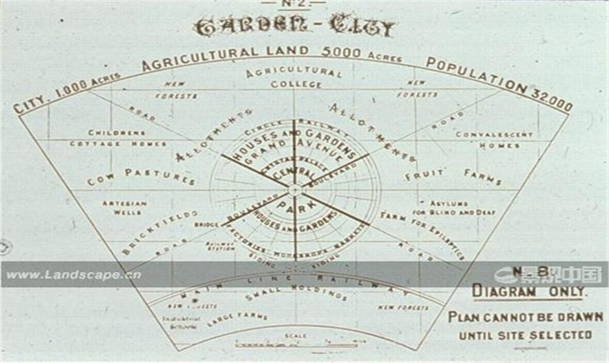 19世紀末至20世紀初,埃比尼澤•霍華德(Ebenezer Howard)、雷蒙•溫翁(Raymond Unwin)等人為英國下層平民做了一些規(guī)劃,許多知識分子認為窮人和工人階級不應(yīng)居住在擁擠、危險且污染嚴重的環(huán)境中(圖18)。為此,他們于1898年創(chuàng)立了“花園城市協(xié)會”(Garden City Association)。他們提出許多觀念,最有影響力的當屬霍華德1902年提出的花園城市概念(圖19),此概念要減小主要城市規(guī)模,降低主要城市的人口密度,而以郊區(qū)環(huán)帶包圍中心城市,并將人口安置在小型的近郊區(qū)新城鎮(zhèn)里。所有的這些地區(qū)用高效的公共交通系統(tǒng)連接起來。在市中心擁有中央商務(wù)區(qū)和公園,用鐵路把四周的低密度住宅和農(nóng)業(yè)用地連接在一起。萊切沃斯在1903年設(shè)計的,在今天它仍然是一個非常有吸引力的居住區(qū)。花園城市概念是影響英美及部分歐洲國家的城市開發(fā)的最重要思想。這個思想也促使了對建設(shè)近郊區(qū)的重視,今天的 “新城市主義”也是在探討此類問題。我認為以前舊城市主義比新城市主義更好,因為它們是用鐵路和公交連在一起,而不是用汽車。