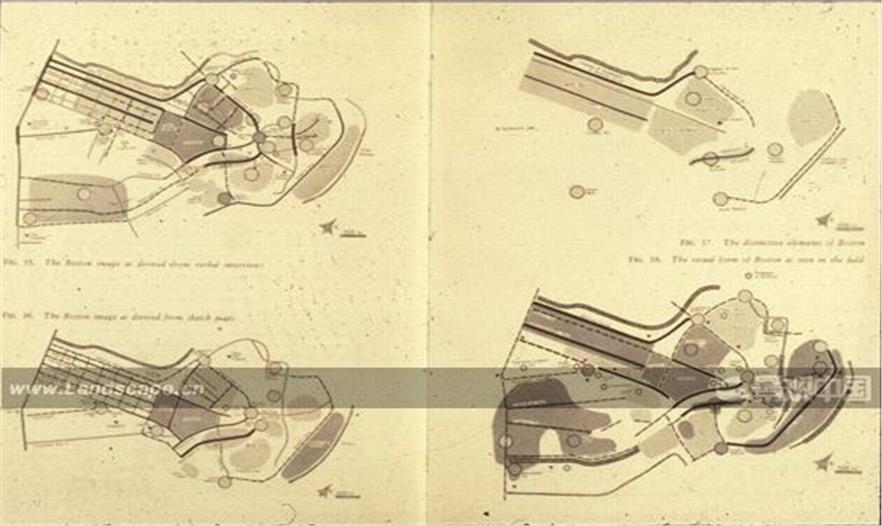 我的老師凱文•林奇 (Kevin Lynch)提出了一個非常重要的思想。20世紀60年代,他認為規(guī)劃師在提出設(shè)計之前,應(yīng)該理解普通人認知他們周圍環(huán)境的方法。林奇就很多主題寫了大量書籍,但他最重要的著作便是《城市的意象》(The Image of the City,圖24,25)。規(guī)劃師第一次與普通人直接交流,以了解他們理解城市的方式。林奇堅信,設(shè)計應(yīng)該使一個城市具有更明晰的結(jié)構(gòu),更方便普通人理解。他所理想的好的城市應(yīng)該具有一個可讓人理解的結(jié)構(gòu)及意象,而且這種結(jié)構(gòu)意象并非規(guī)劃師強加的,他做了幾個城市結(jié)構(gòu)的研究,并指出:哪些是模糊的,哪些是清晰的。 圖26、27是我1961年師從林奇先生時的作品。