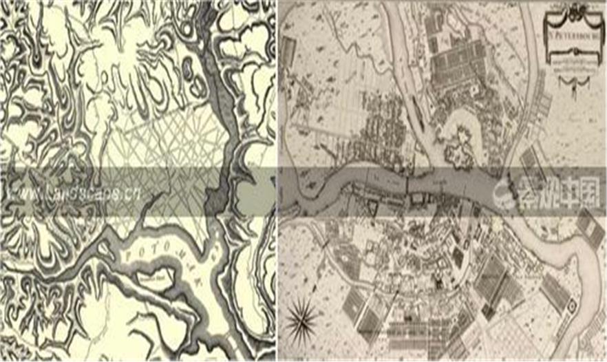 我們可以看到亞洲很早結(jié)合自然的一種系統(tǒng),就是我們的風(fēng)水。古代的一些繪圖法一直很吸引我們,現(xiàn)在我們看到的中國古代的地圖冊,可以看到這個圖中山和水有一種很強烈的關(guān)系。