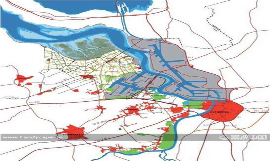 簡單的景觀設(shè)計可以阻止工業(yè)化的發(fā)展,并且有助于將周邊環(huán)境的污染進行減少。這是安特衛(wèi)普港設(shè)計競賽項目,他的邊界位于比利時和荷蘭之間,根據(jù)歐洲的法律,每創(chuàng)造一些新的建城區(qū),必須建一定量的自然區(qū),這邊紅色部分是北部需要向南部的擴張,需要設(shè)計的是堤壩擴張,創(chuàng)造一些新的自然空間。但這是個很受爭議的話題,創(chuàng)造自然空間就會導(dǎo)致一些村莊的拆遷,從圖上三種顏色可以看到,他們是分為三個區(qū)域的景觀,有主動景觀,控制景觀和嚴格控制景觀(圖6)。這是一個牽扯到很多方面的問題,比如工程、水利、景觀,但是他們經(jīng)過改造之后,仍然保護了一些濕地,為管理人的利益得到保障,并且創(chuàng)造了一些非?,F(xiàn)代化的幾何景觀(圖7)。從前面的圖可以很清晰的看出,留出河道讓水進來,并且受集裝箱靈感的影響,設(shè)計出居住型的空間,產(chǎn)生一個住在水上一個的概念(圖8)。