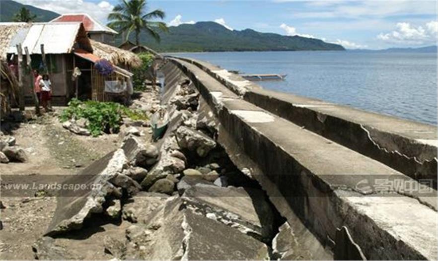 圖1中可以看到一個環(huán)海的堤墻,它現(xiàn)在的狀況不是太好,在有些情況下會遭受臺風的襲擊,以及洪水。在這種很高風險地方居住的都是貧窮的人們,我們的計劃是在當?shù)卣蜕鐓^(qū)規(guī)劃中整合氣候變化的原則和問題。