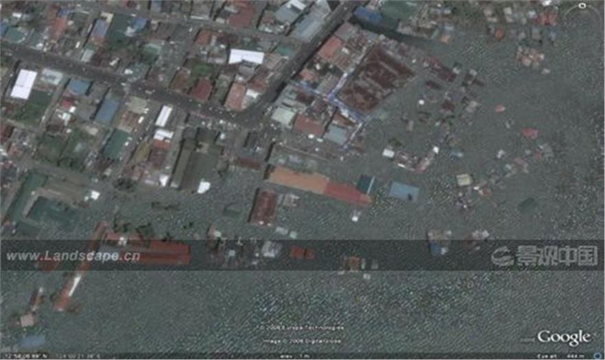 下面這些圖(2-5)清晰的顯示了中間的中央商務區(qū),沿海這邊是狹小、老舊的房屋。我們通過GOOGLEMAP的工具,模擬了如果海平面上升0.5m,1m以及2m時候的樣子。這些非常強有力的證據(jù)便是我們向當?shù)厥虚L所展示的。