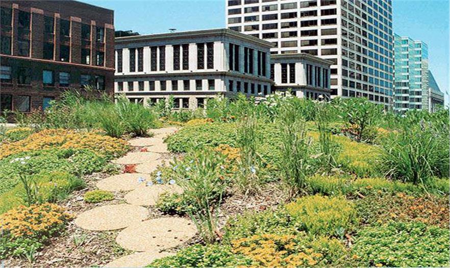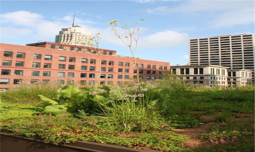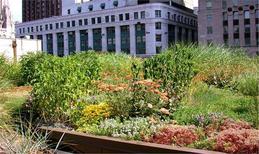因?yàn)檫@些原因,芝加哥建立了城市熱島法案。這個(gè)不難理解到因?yàn)橹ゼ痈缇G色空間的缺乏以及雨水管理的需求,解決城市熱島效應(yīng)的最佳辦法是增加綠色屋頂。
