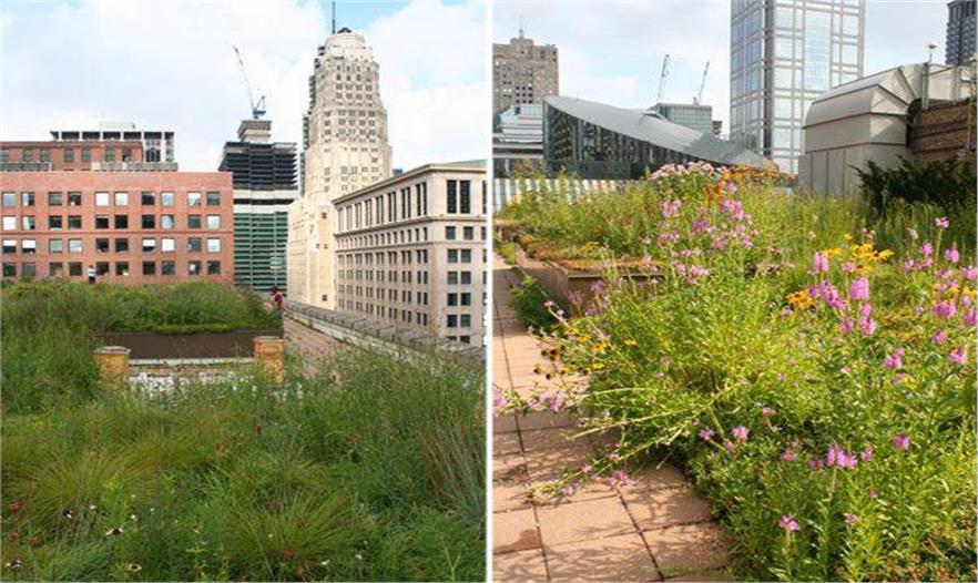 數(shù)據(jù)顯示出這個(gè)綠色屋頂平均比周圍的屋頂溫度要低7度,能保持75%的雨水,一年減少建筑的能源消費(fèi)達(dá)5000美元,減少噪聲污染40分貝。