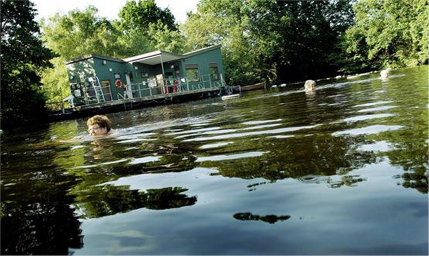 在倫敦北區(qū)的漢普特西斯(Hampstead Heath)婦女在女性游泳池里游泳