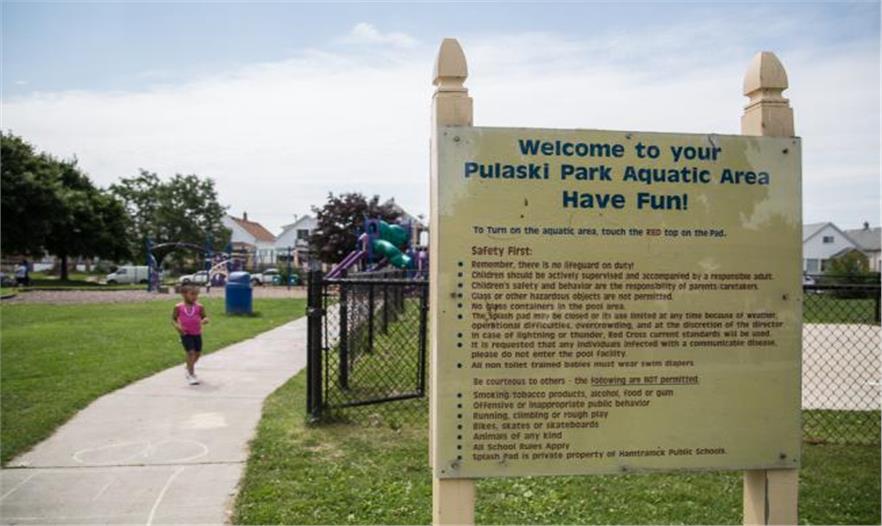 哈姆特拉米克市普瓦斯基公園(Pulaski Park)就是一個(gè)例子。這個(gè)公園位于普金街(Lumpkin Street)和愛(ài)德溫街(Edwin Street)交叉區(qū)上工薪階層社區(qū)里,建在之前的一個(gè)小學(xué)區(qū)域上。其便利設(shè)施有一個(gè)棒球場(chǎng)、游樂(lè)場(chǎng)地和900平方英尺的噴水池。但最突出的還是它的規(guī)劃。