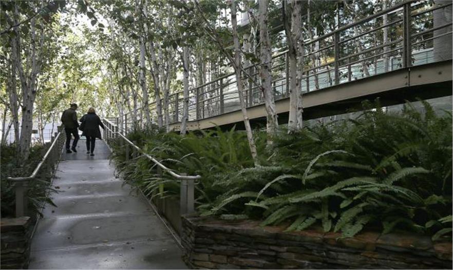 這場旅行很生動,因為所在地不是在一些森林峽谷中,而是在舊金山波特雷羅山底部2個辦公建筑之間的一個層疊狀的廣場上。這塊標志性的自然區(qū)域建于2002年,現(xiàn)在富有情感力——歸于時間的發(fā)展形成,將景觀設計從其他設計領域中區(qū)別開來。
