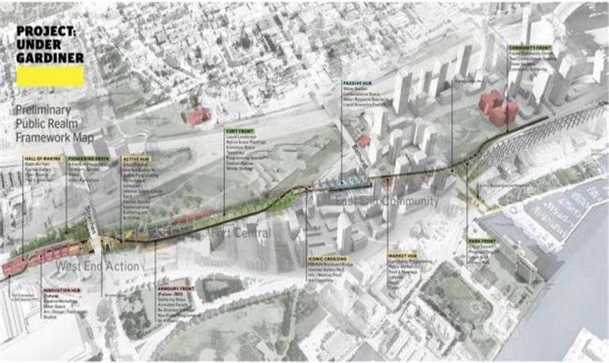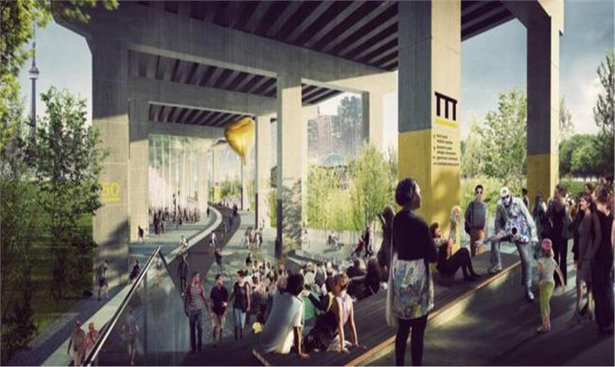 幾十年以來,嘉甸拿高速公路一直是多倫多市區(qū)和安大略湖之間的障礙。2017年將改善該高速公路下4公頃(10英畝)的空間,建造道路和聚集區(qū),與該城市發(fā)展最快的區(qū)域結(jié)合起來。