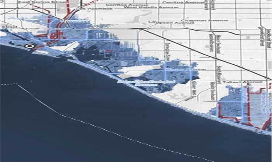 洛杉磯大部分是海港社區(qū),包括生態(tài)保護區(qū),都將被淹沒。