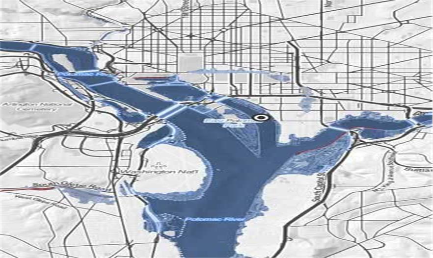 觀察華盛頓,有人就會看到安那考斯迪亞河和波托馬克河將會延伸區(qū)域,占據(jù)潮汐盆地、東波托馬克公園、海軍碼頭的大部分,華盛頓國家廣場部分也會被淹沒。里根國家機場也需要關閉一些跑道。