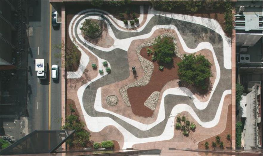 布雷•馬克斯就是完美的中間者,建造高度規(guī)則化且圖案大膽的花園,但是當(dāng)建在四四方方全白的建筑頂上時,花園會人性化且加深該建筑效果。
