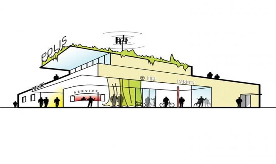 在美國,警察局因為種種原因,脫離了社區(qū)而獨立存在,往往被停車場包圍。這使警察和社區(qū)的聯(lián)系降到最低,而且增添許多不和諧因素。Studio Gang,提出警局可以通過提供免費無線網(wǎng)絡(luò)和ATM等服務(wù)吸引人。通過提供座位,社區(qū)藝術(shù),涼亭,花園或者商鋪等手段和社區(qū)更好結(jié)合在一起,為社區(qū)和警局同時提供更多的服務(wù)。