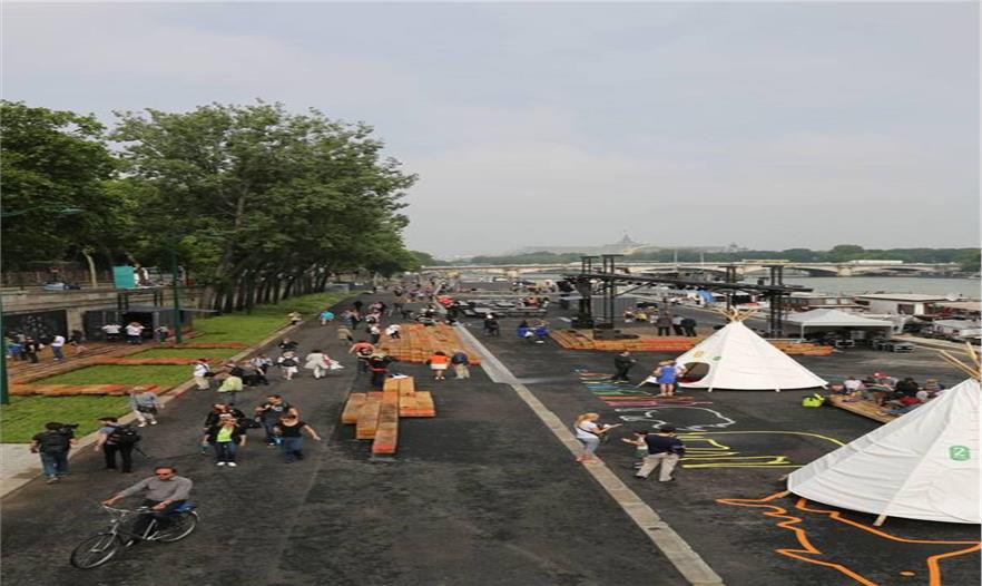 巴黎塞納河岸是一個世界遺產(chǎn)項目。該區(qū)域為巴黎的居民和游客提供了許多功能,如散步、坐下休息、玩樂、表演、茶飲、交談、租用自行車等等,設有游戲桌、印有游戲的地面、一些陽光露臺、漂浮花園、酒吧、跑道、巨大的臺階、兒童游樂場、攀巖石等等。