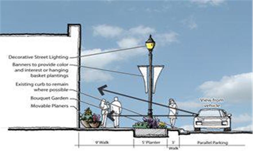 6.綠化要營造出畫面感。但是,當(dāng)進(jìn)行景觀設(shè)計(jì)時(shí),設(shè)計(jì)師必須使用游客視線之上的低綠化或綠化。大部分的低綠化最高45厘米—60厘米(18英寸—24英寸)。所有的樹木或上層景觀應(yīng)該維持在1.8米(6英尺)或更高。中間景觀區(qū)域要明確。這樣就完成了2件事,街道沿線加入一系列區(qū)域,如零售區(qū),而且不提供人們能夠隱藏的區(qū)域,確保安全。