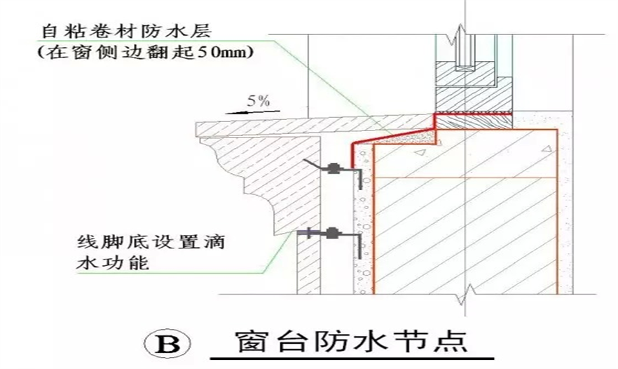↑窗臺(tái)防水節(jié)點(diǎn)(無附框)
