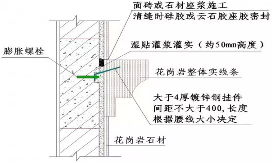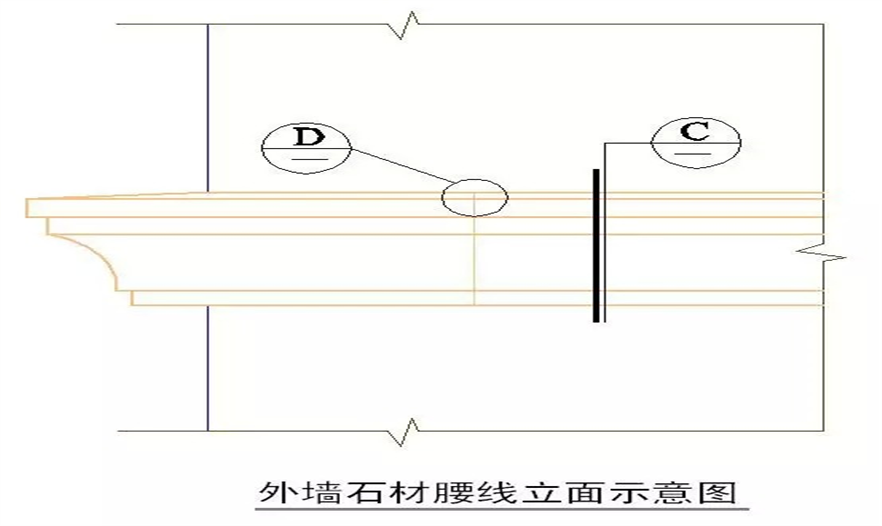 ↑石材腰線施工節(jié)點(diǎn)
