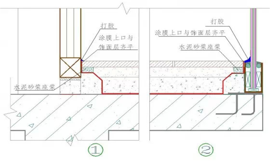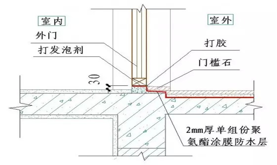↑室外門安裝及門檻石鋪裝及防水節(jié)點(diǎn)