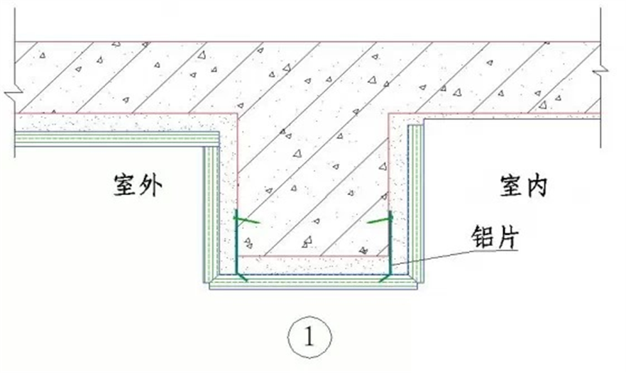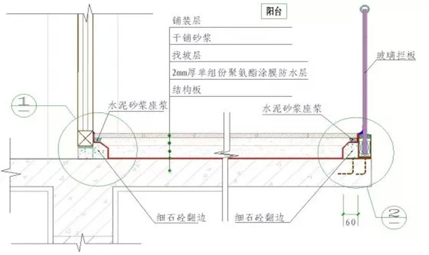 ↑玻璃幕墻構(gòu)造的陽(yáng)臺(tái)防水做法