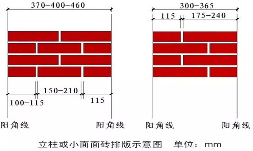 1.在排版時(shí),陽(yáng)角磚必須大于100mm,窗間墻陽(yáng)角面磚大于80mm;