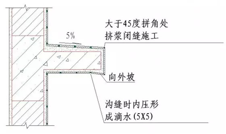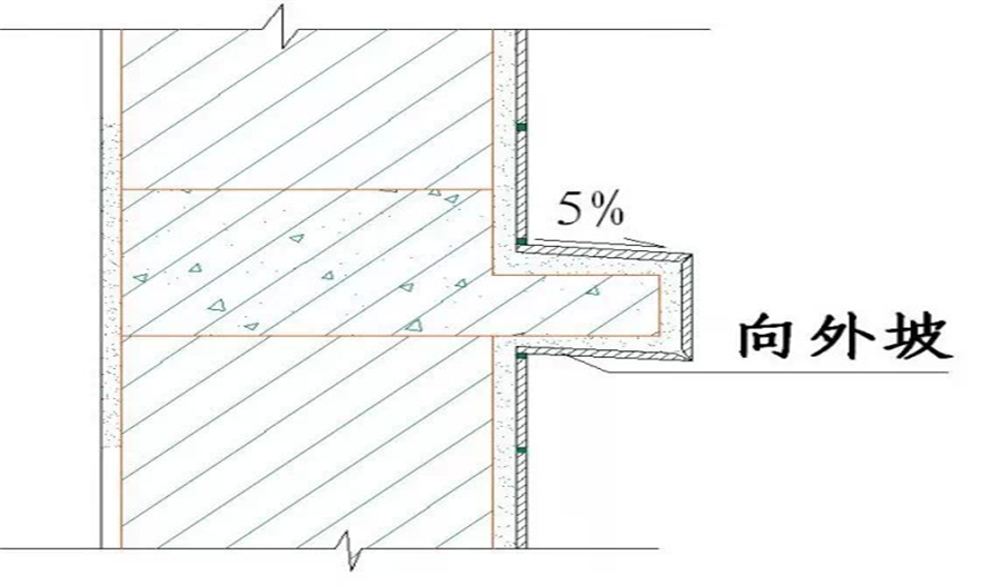 注:室外花崗巖窗臺(tái)及線腳基層水泥砂漿粉刷坡度大于10%。