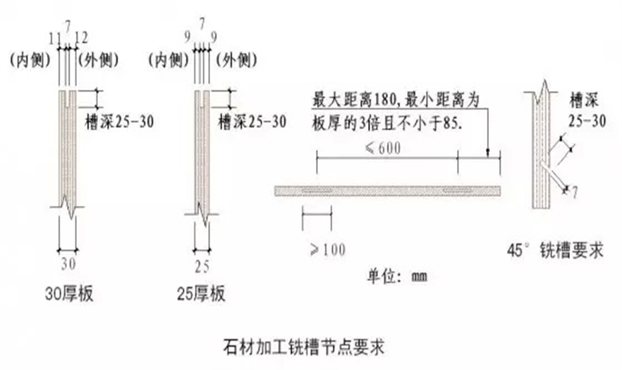 6.石材短槽必須機(jī)械開槽,保證槽縫寬度符合設(shè)計(jì)要求,嚴(yán)禁現(xiàn)場(chǎng)手提切割機(jī)開槽。