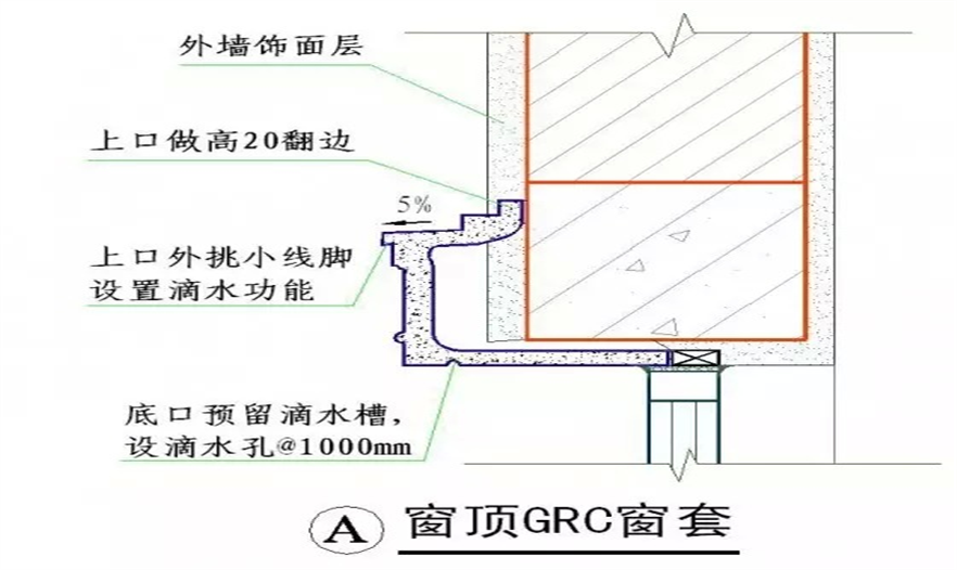 1.所有GRC裝飾線必須保證上平面有坡度,下有滴水功能;
