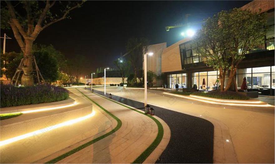 燈光設(shè)計也是本項目重點(diǎn)設(shè)計之一。地面的點(diǎn)式地?zé)?、花池邊隱藏的燈帶、高桿庭院燈等燈光的設(shè)計統(tǒng)一協(xié)調(diào),點(diǎn)、線、面以及光色的搭配,使得遠(yuǎn)處的自然風(fēng)光與燈光景觀相得益彰。