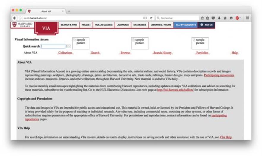 哈佛圖書館的 VIA (視覺信息通道) 提供描述記錄,建筑學(xué)繪畫和攝影。所有圖像都只能為教育目的使用。