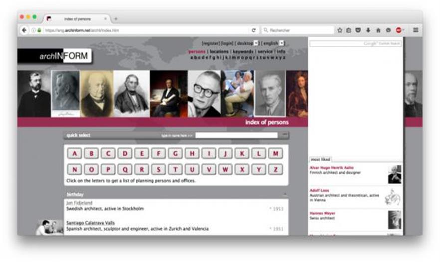 在ArchInform,你能找到完整的建筑師傳記,以及成就他們職業(yè)生涯的建筑的描述。在建造的建筑,已建成的建筑,未建造的項(xiàng)目,以及獲得的獎(jiǎng)項(xiàng)和出版物都被呈現(xiàn)在網(wǎng)頁上。不止如此, ArchInform 有非常全面的數(shù)據(jù)庫,既有知名建筑師,也包括不那么著名的建筑師。