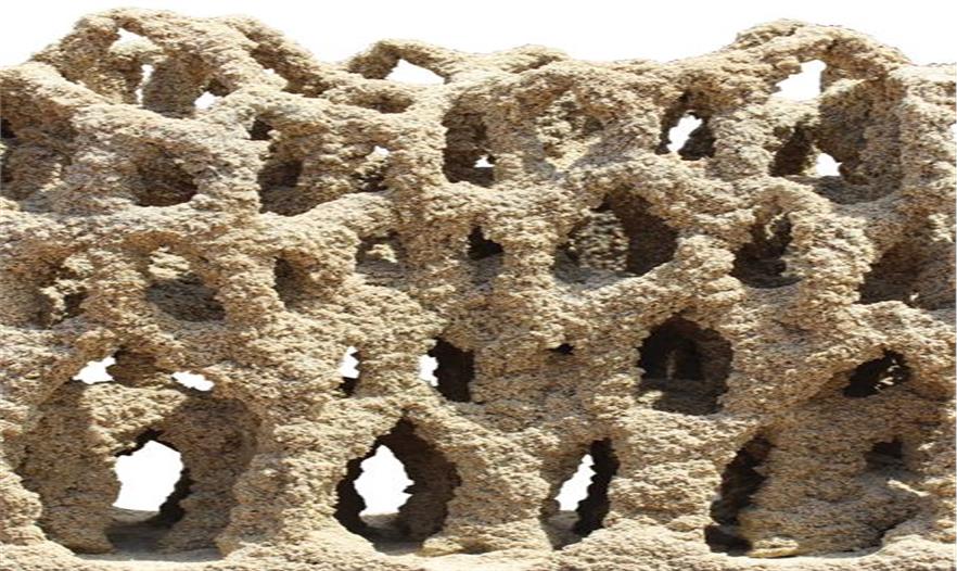 另一個有趣的應(yīng)用——Stone Spray,一種3D打印機,直接收集區(qū)域上的沙子,利用粘合劑混合起來。這種利用附近材料同步打印結(jié)構(gòu)的構(gòu)思很令人驚嘆。這項技術(shù)還處于早期階段,會有諸多限制——附近材料的承重能力會決定該結(jié)構(gòu)的容量。