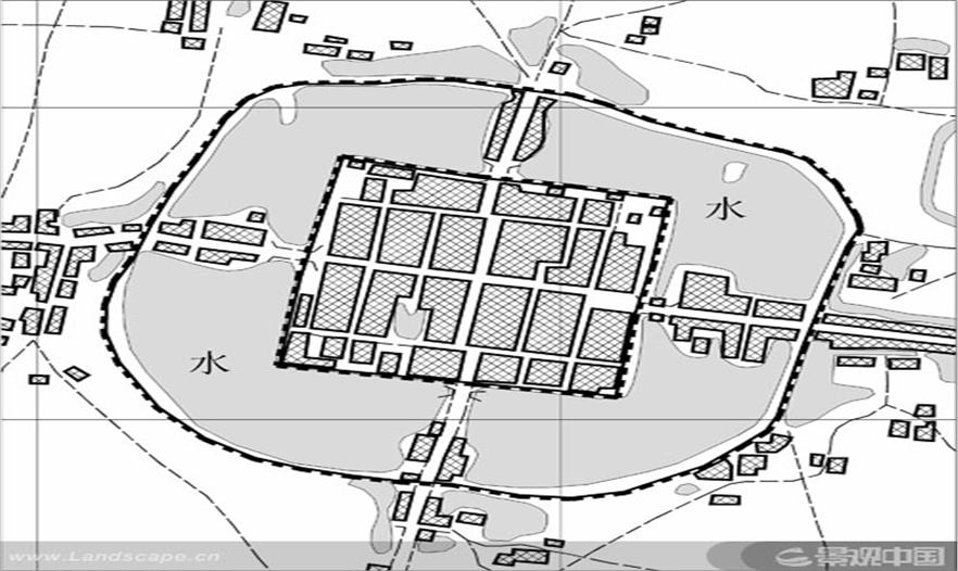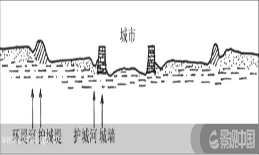 環(huán)城河一般是城中水面最初的形式,在建城之初就結(jié)合修筑城墻而形成,構(gòu)成和城墻一體的防御體系。