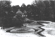 由Herbert Bayer設(shè)計的肯特公園中大地藝術(shù)作品(圖9),可以說與之同出一轍。技術(shù)指導(dǎo)下的坡度設(shè)計,不僅解決了防洪與水土流失問題,還創(chuàng)造了娛樂休閑空間。重復(fù)使用的一系列圓形設(shè)計元素,以及充分利用基底的特性,暗示了“大地藝術(shù)”對景園設(shè)計的影響。