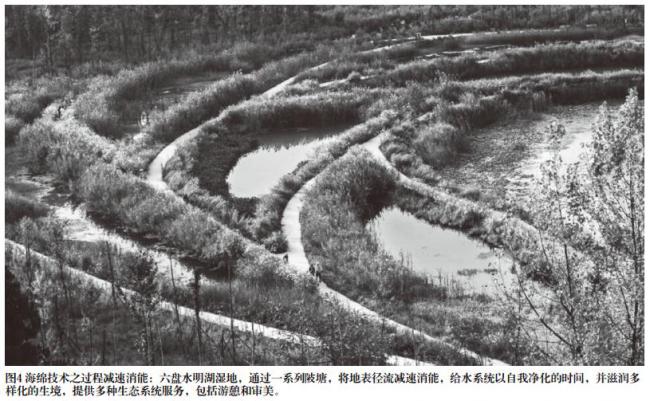 三是當(dāng)代雨洪管理技術(shù)。西方各國(guó)的雨洪管理技術(shù),包括LID(城市的低影響開(kāi)發(fā))技術(shù)、水敏感城市設(shè)計(jì)等,都已經(jīng)較為成熟。如,在LID中,包括透水鋪裝、綠色屋頂、下凹式綠地、調(diào)節(jié)塘、生態(tài)溝、植被緩沖帶、初期雨水棄流設(shè)施,人工土壤滲濾,等等(住建部《海綿城市建設(shè)技術(shù)指南》,2015)。必須強(qiáng)調(diào)的是,這些技術(shù)不宜機(jī)械地搬用、更不宜盲目地套用,也沒(méi)有必要斤斤計(jì)較地用各種復(fù)雜的數(shù)學(xué)公式來(lái)計(jì)算,把簡(jiǎn)單問(wèn)題復(fù)雜化,更應(yīng)該避免將綠色工程“灰色”化。因?yàn)長(zhǎng)ID只是“海綿國(guó)土”和“海綿城市”內(nèi)容中很少的一部分,而且主要用來(lái)解決局地工程建設(shè)時(shí)的源頭雨洪管理問(wèn)題。
